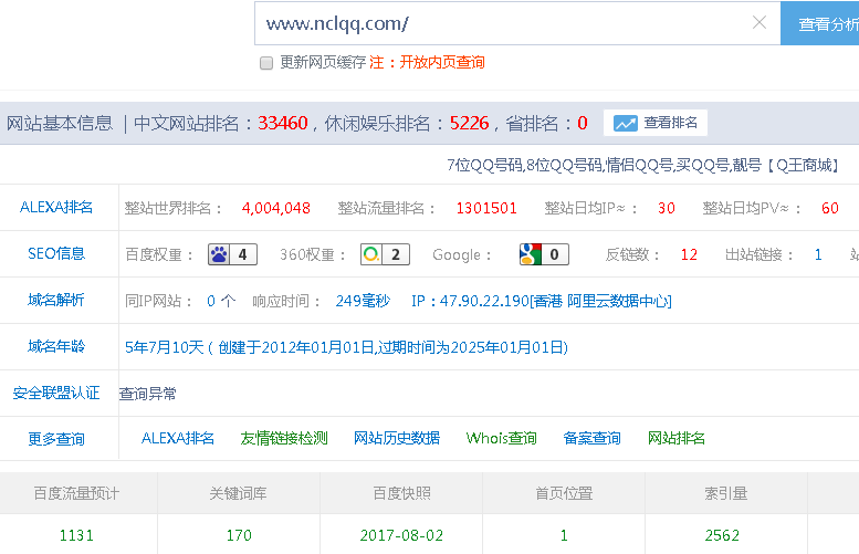 网站主要是买卖QQ号的,听客户说之前每天的流量还是很不错的,降权之前每天流量都比较固定,但是经百度降权之后,基本上也就是一两天的时间,流量就所剩无几了,因为网站的流量绝大部分都是用户通过搜索引擎搜索关键词过来的。搜索引擎这个渠道端了,流量一就随之消失殆尽了。
